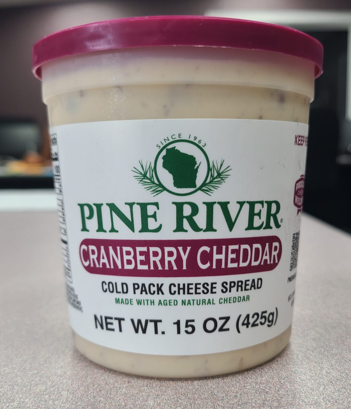 Ingredients: SHARP CHEDDAR CHEESE AGED 9 MONTHS (PASTEURIZED CULTURED MILK, SALT, ENZYMES), WATER, REDUCED LACTOSE WHEY, DRIED CRANBERRIES (CRANBERRIES, SUGAR, SUNFLOWER OIL), BUTTER (CREAM, SALT), WHEY, SORBIC ACID (PRESERVATIVE), SEA SALT, LACTIC ACID, GUAR GUM.